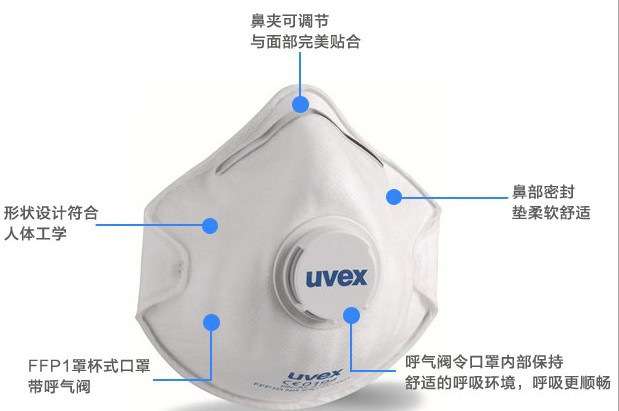 優(yōu)唯斯 FFP1系列-uvex silv-Air 2110防塵口罩是個(gè)體防護(hù)產(chǎn)品中的一種,主要制作材質(zhì)為無(wú)紡布。該口罩帶有呼吸氣閥,可以保持口罩內(nèi)部舒適的呼吸環(huán)境。除此之外,口罩亦根據(jù)人體工學(xué)來(lái)設(shè)計(jì)形狀,以此來(lái)確??谡值氖孢m度。還有就是,口罩鼻部密封墊柔軟舒適,并具有調(diào)節(jié)功能的鼻梁夾,以此來(lái)確??谡峙c面部的貼合性。這個(gè)類(lèi)型的口罩,一般適合應(yīng)用于建筑搬運(yùn)等行業(yè)里,具有防塵、防霧霾的功能。