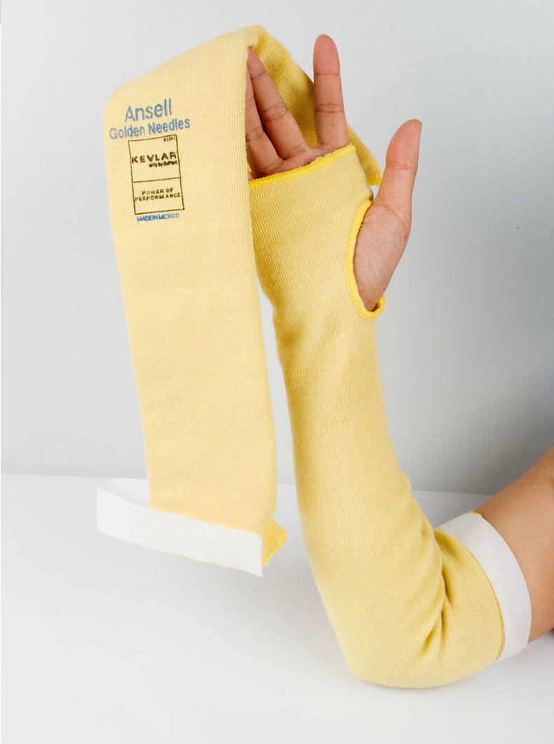 雙層套袖全長45厘米,使用100%Kevlar纖維制造,可提供抗割性能、柔韌和舒適性。可保護前臂免受輕度灼傷和高溫。 特性:使用100%Kevlar纖維制造,帶有姆指品和Velcro帶;雙層設(shè)計可增加對手臂的保護;可保護前臂免受高溫、灼熱和切割等危害。 適用范圍:玻璃、瓷器工業(yè);耐用品;汽車工業(yè);金屬沖壓。