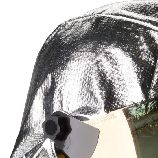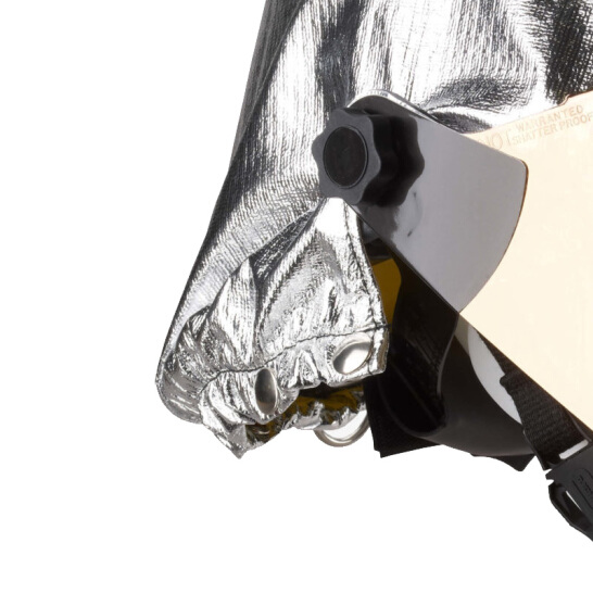 頭盔外殼為玻璃纖維材料,優(yōu)異的耐高溫性能和耐化學(xué)物質(zhì)性能;外側(cè)為3層PBI/Kevlar 鍍鋁隔熱材料,使用魔術(shù)搭扣與頭盔連接; 6英寸鍍金面屏,符合NFPA1976標(biāo)準(zhǔn)要求,表面有防刮擦涂層;柔軟襯墊,6點(diǎn)式減震系統(tǒng)使得穿戴更加舒適;可配合空氣呼吸器使用。