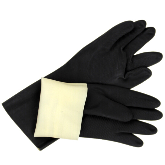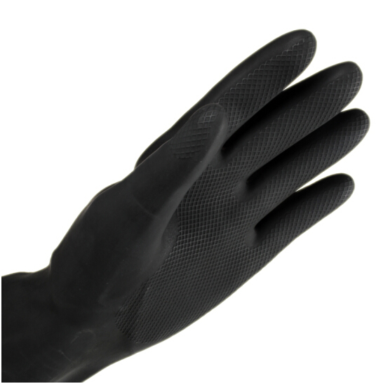 由天然橡膠制成,不含其它填充物。手套表面經(jīng)過氯化處理以增加抗化學(xué)性能和耐用性,手套里層帶棉植絨以提高佩戴實(shí)用性。使用重量型天然橡膠,但仍不失柔軟性,可提供舒適性能;使用天然橡膠不含其它填充物,從而提高抗化學(xué)性能;菱形掌面紋路可增強(qiáng)干濕抓握性;氯化處理表面可增強(qiáng)防水性和機(jī)械性能。